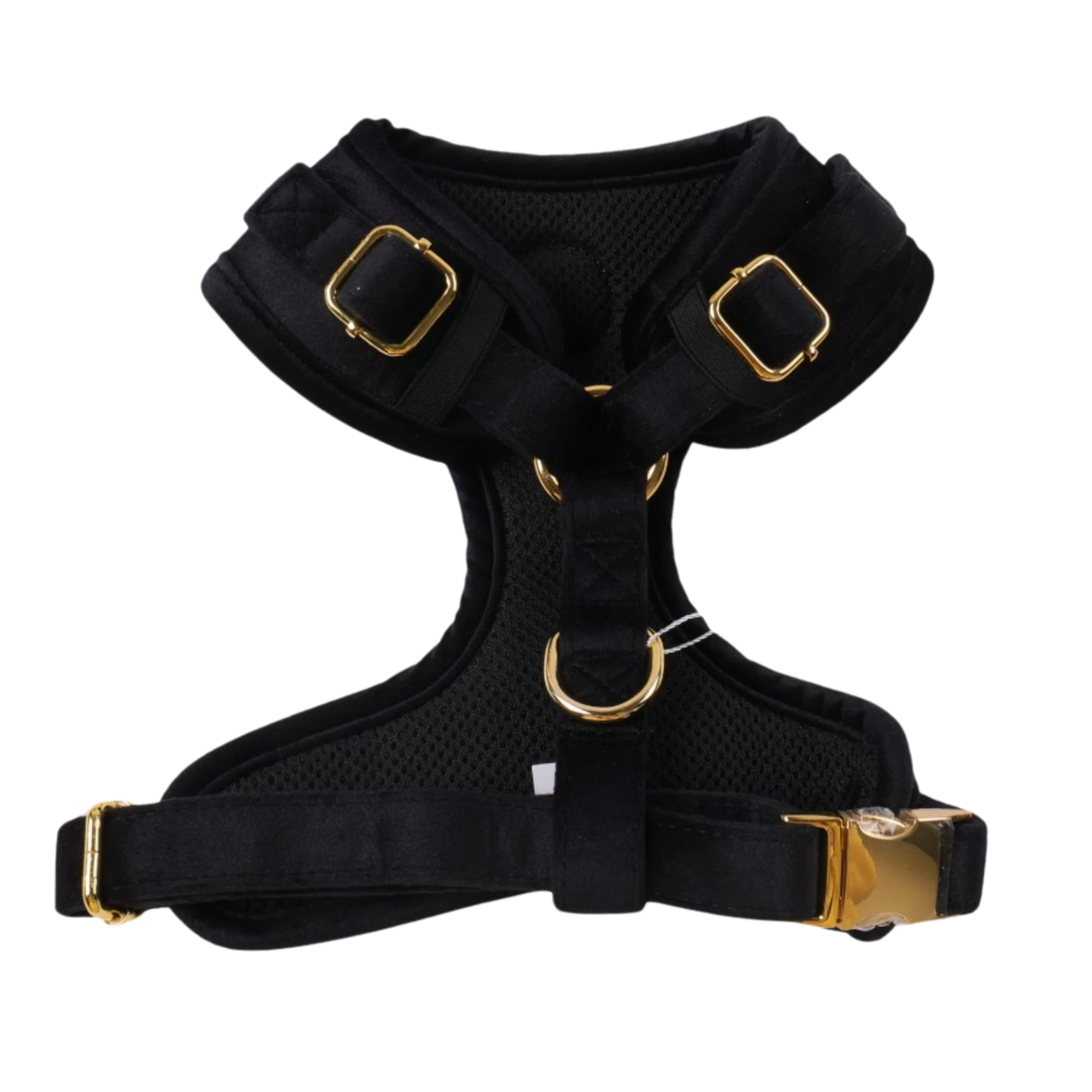 Naast het luxueuze design is het Velvet Harnas ook uiterst functioneel. Het stevige ontwerp maakt het geschikt voor dagelijkse wandelingen door het park, maar ook voor langere avonturen in de natuur. Dankzij de sterke D-ring bevestig je moeiteloos een riem, zonder dat je je zorgen hoeft te maken over veiligheid of comfort. De ademende stof zorgt ervoor dat je hond het niet te warm krijgt, zelfs tijdens actieve momenten.