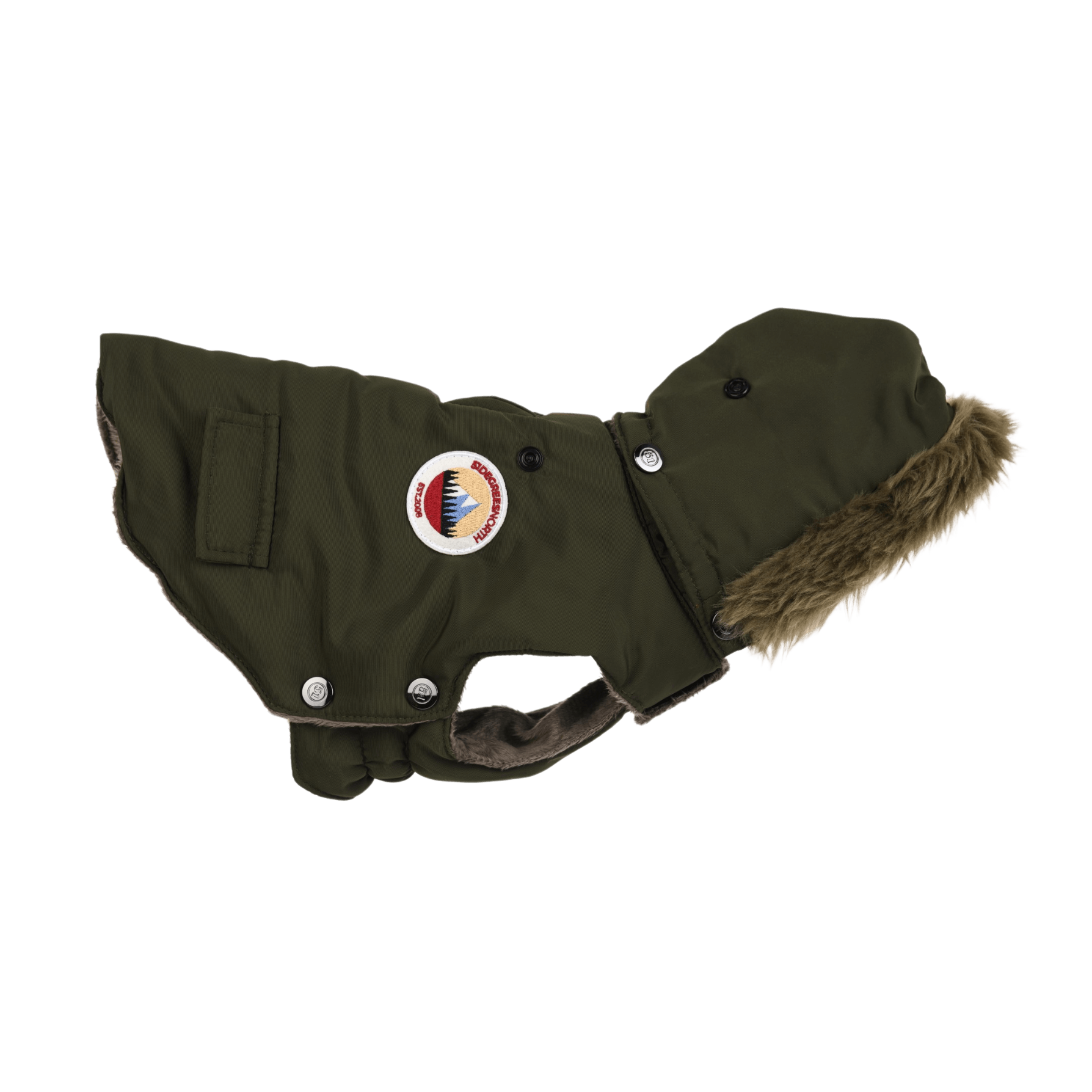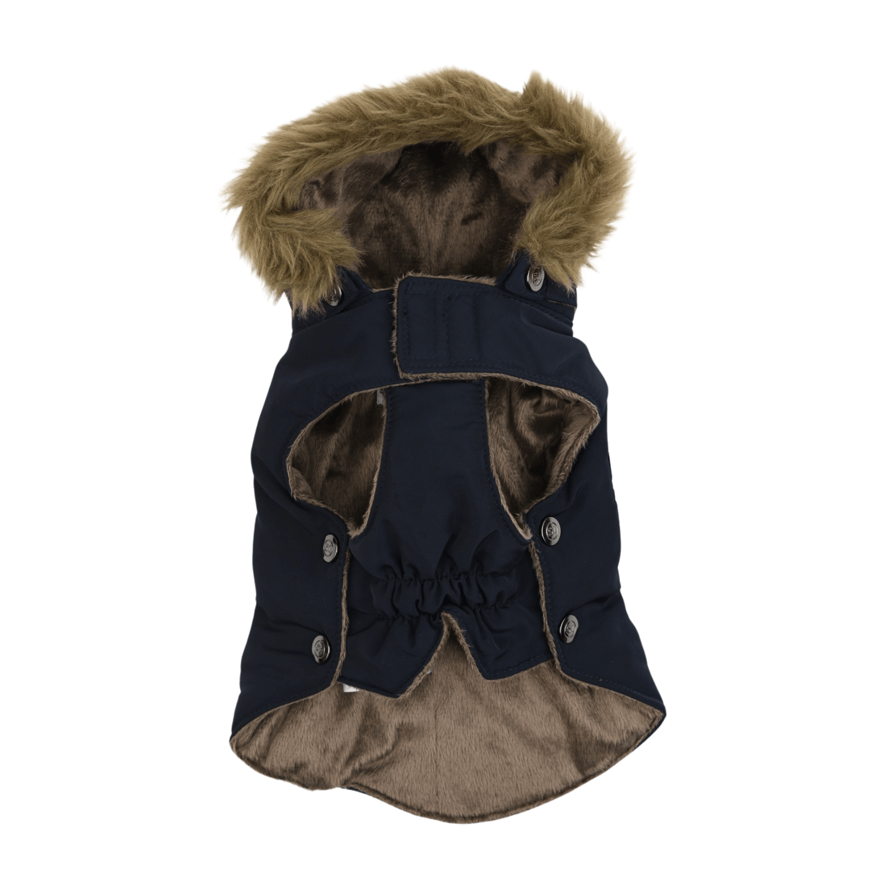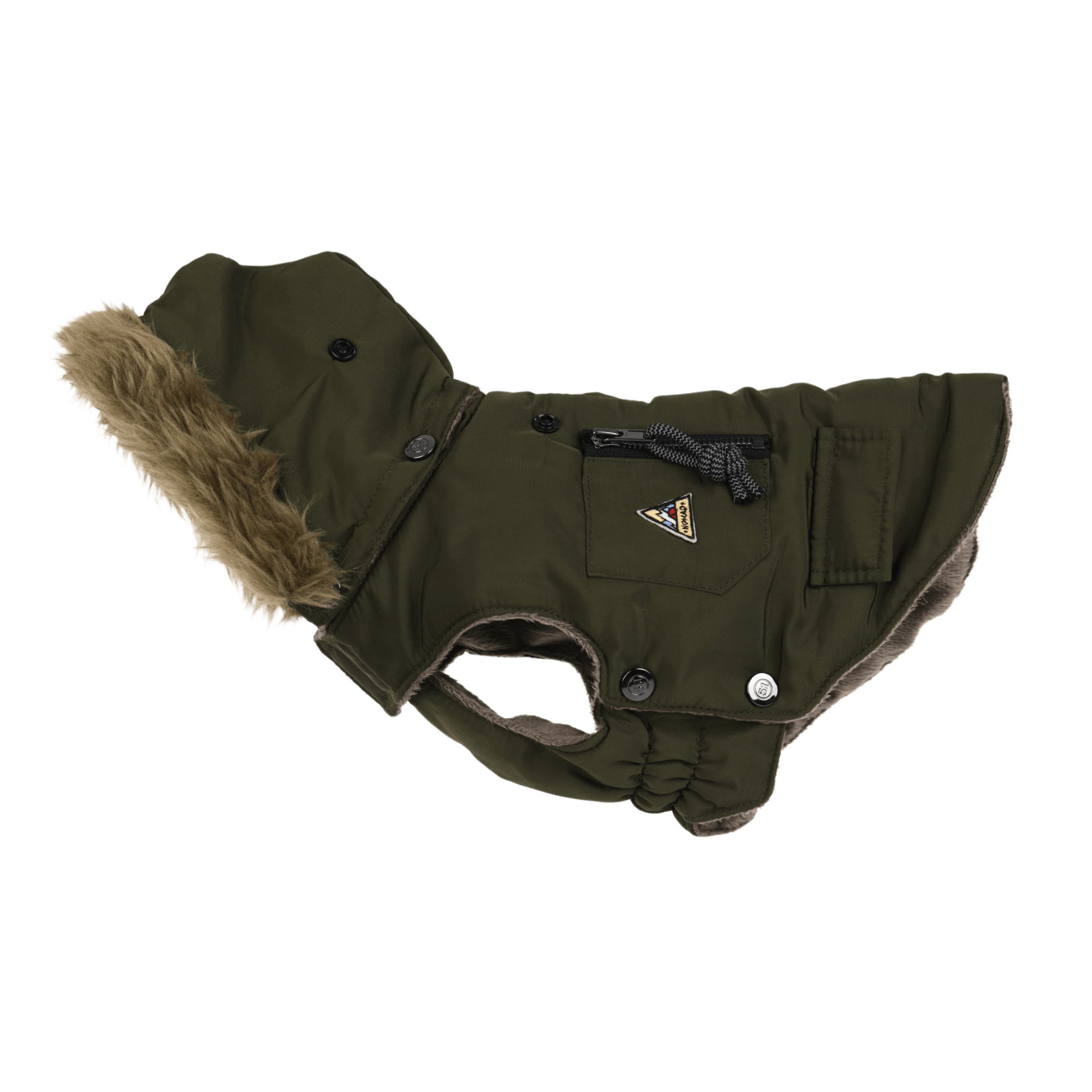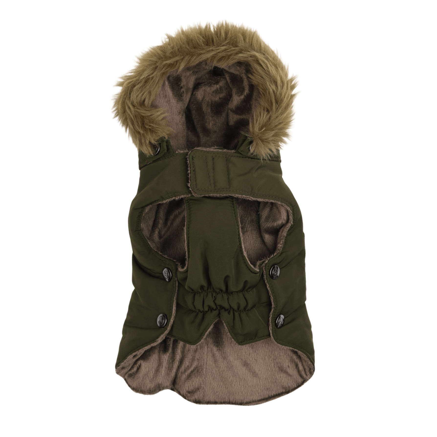 Met deze comfortabele & warme jas met zachte binnenvoering bescherm je jouw huisdier dit najaar tegen koude dagen. Daarnaast heeft deze jas een afneembare kap met een neppe bontkraag voor extra warmte. De jas is voorzien van handige velcro-sluitingen aan de onderkant, waardoor je hem super makkelijk aan en uit kan doen & de kap is voorzien van drukknopen, waarmee je deze makkelijk kan verwijderen of terug aan de jas kan zetten.