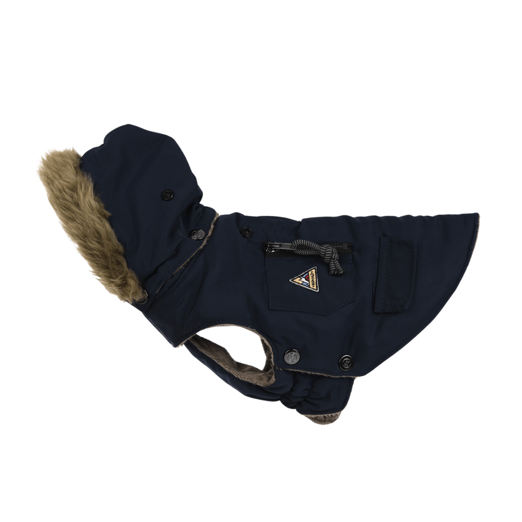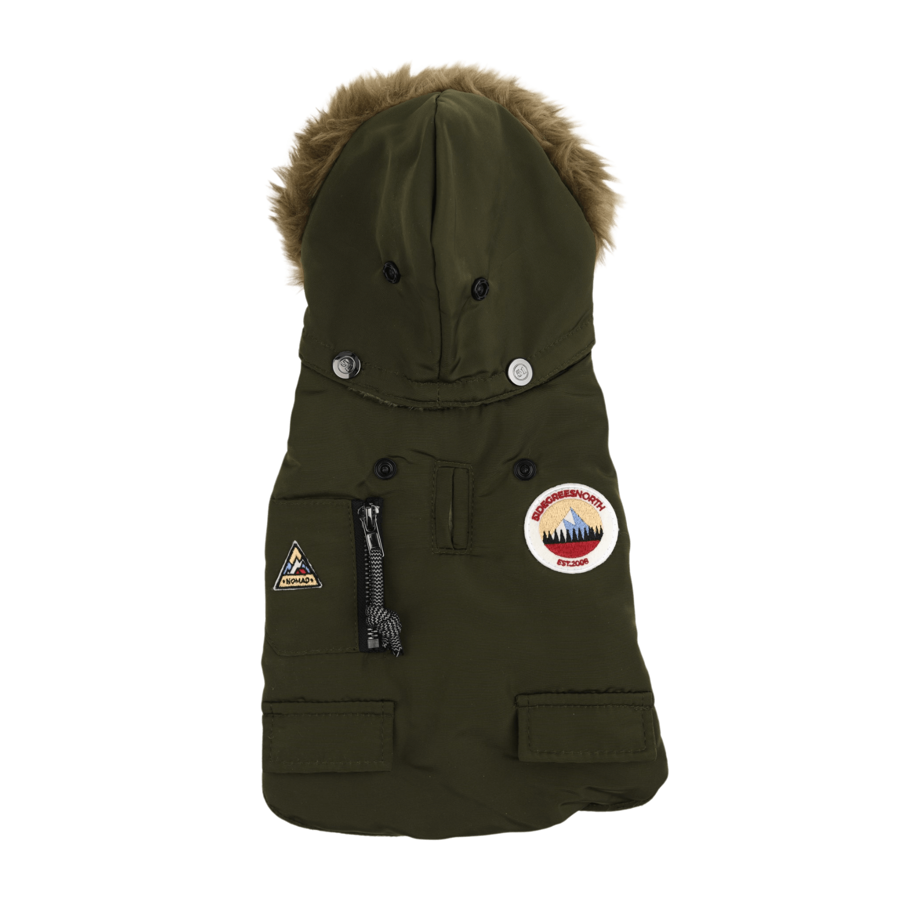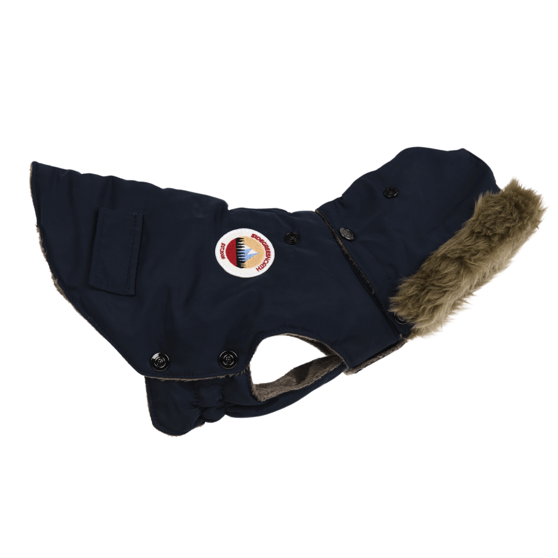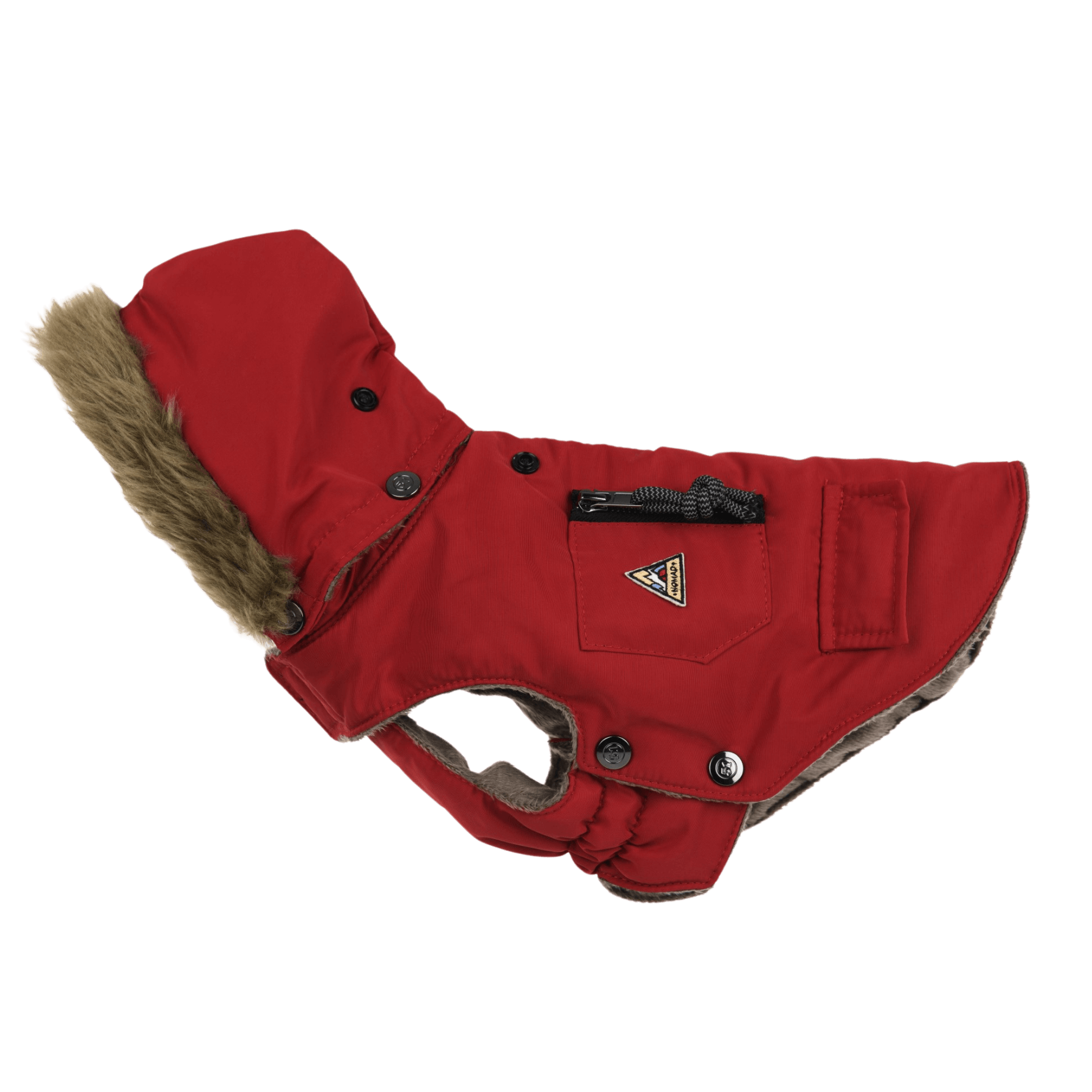 Met deze comfortabele & warme jas met zachte binnenvoering bescherm je jouw huisdier dit najaar tegen koude dagen. Daarnaast heeft deze jas een afneembare kap met een neppe bontkraag voor extra warmte. De jas is voorzien van handige velcro-sluitingen aan de onderkant, waardoor je hem super makkelijk aan en uit kan doen & de kap is voorzien van drukknopen, waarmee je deze makkelijk kan verwijderen of terug aan de jas kan zetten.